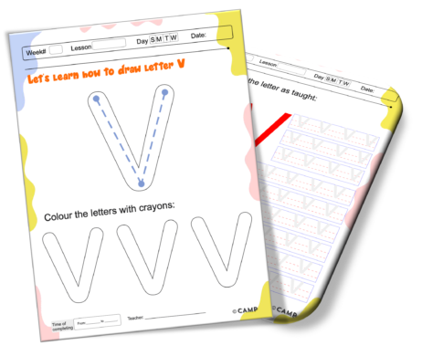 This worksheet offers very valuable practice writing the letter V! First, kids trace lines to practice the fine motor skills they need to form the letter V.