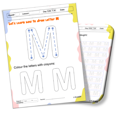 Mmm, milk! Here’s a way to practice M that little milk fans can appreciate! First, kids trace lines to practice the fine motor skills they need to form the letter M. Then, they trace the letter several times for practice.